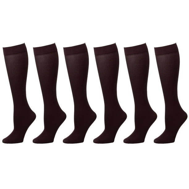 6 Pack Brown Women Trouser Socks With Comfort Band Stretchy Spandex Opaque Knee High Walmart Com